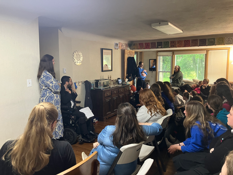 The visit concluded with a deeply moving talk from Rabbi Dr. Yehoshua Hoffman, who became paralyzed from the neck down after a car accident 18 years ago. He shared how navigating adversity allowed him to uncover his soul and purpose, and his wife joined for a heartfelt Q&A, answering students’ honest and thoughtful questions about emunah in times of struggle. We were even given the rare privilege of seeing handwritten notes of Rebbetzin Chaya Ausband a”h, still treasured in the home they are renting. This moment held deep personal meaning for Mrs. Berkowitz, a devoted talmidah of the Rebbetzin.