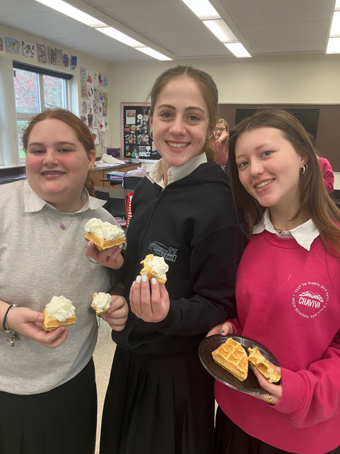 As Purim came to a close, the energy at Chaviva shifted towards Pesach preparation, with students diving into both the physical task of cleaning and the intellectual work of learning. The week leading up to Pesach was packed with thoughtful activities, culminating in our much-anticipated annual Pesach Yom Iyun. Organized by Mrs. Devorah Kraut and led by student heads Hadassah Elkan and Kayla Goldish, the day offered a chance to slow down and reflect on the upcoming holiday. We began with a delicious waffle bar—a final indulgence in chametz before turning our attention to the meaning behind the Seder.